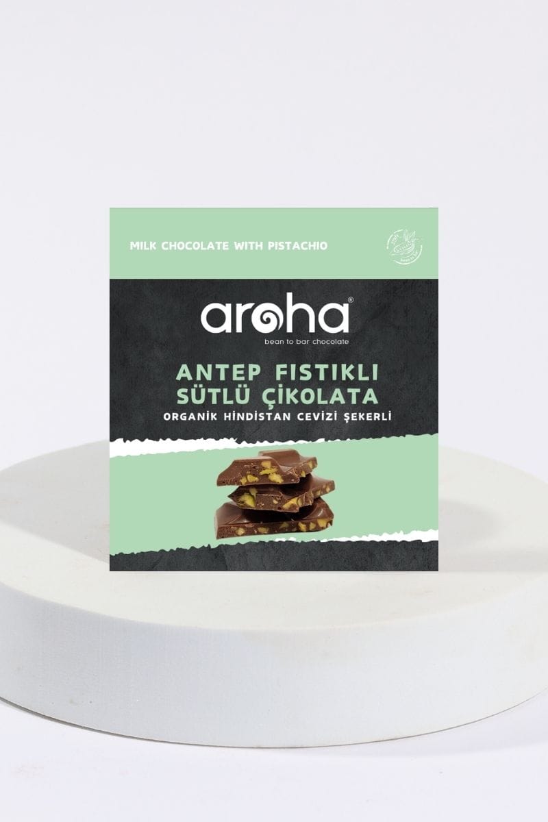 40 g – Bean to bar çikolata yöntemi ile üretilen, hiçbir katkı ve koruyucu içermeyen Aroha Çikolata çeşitlerine bir yenisi daha eklendi. Rafine şeker içermeyen, organik hindistan cevizi şekeri ile hazırlanmış sütlü çikolata Antep fıstığı parçacıkları ile.
