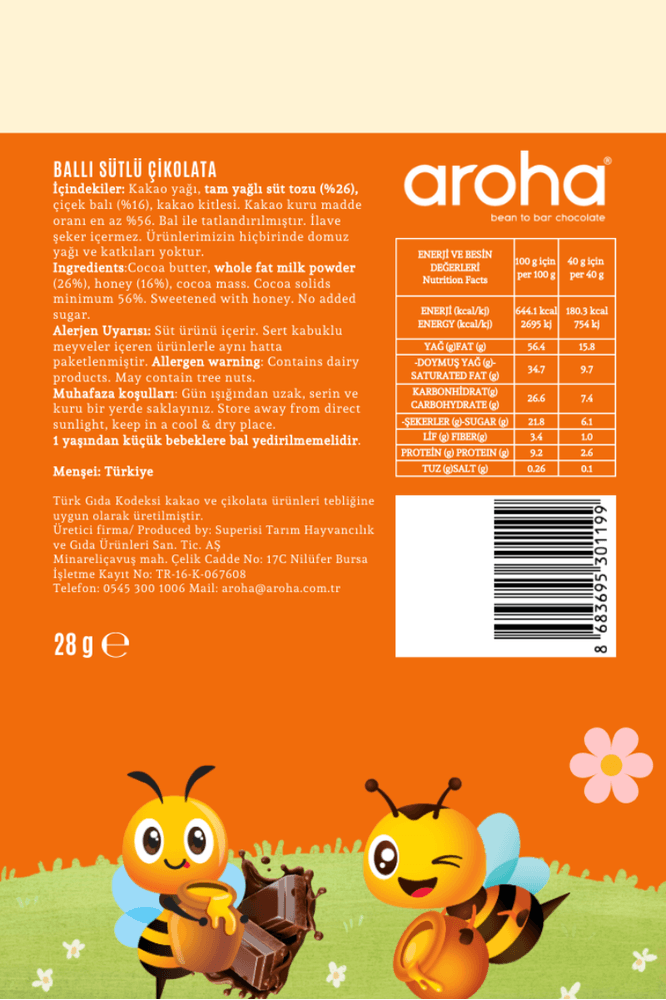 Aroha Kids Ballı Sütlü Çikolata 28 g