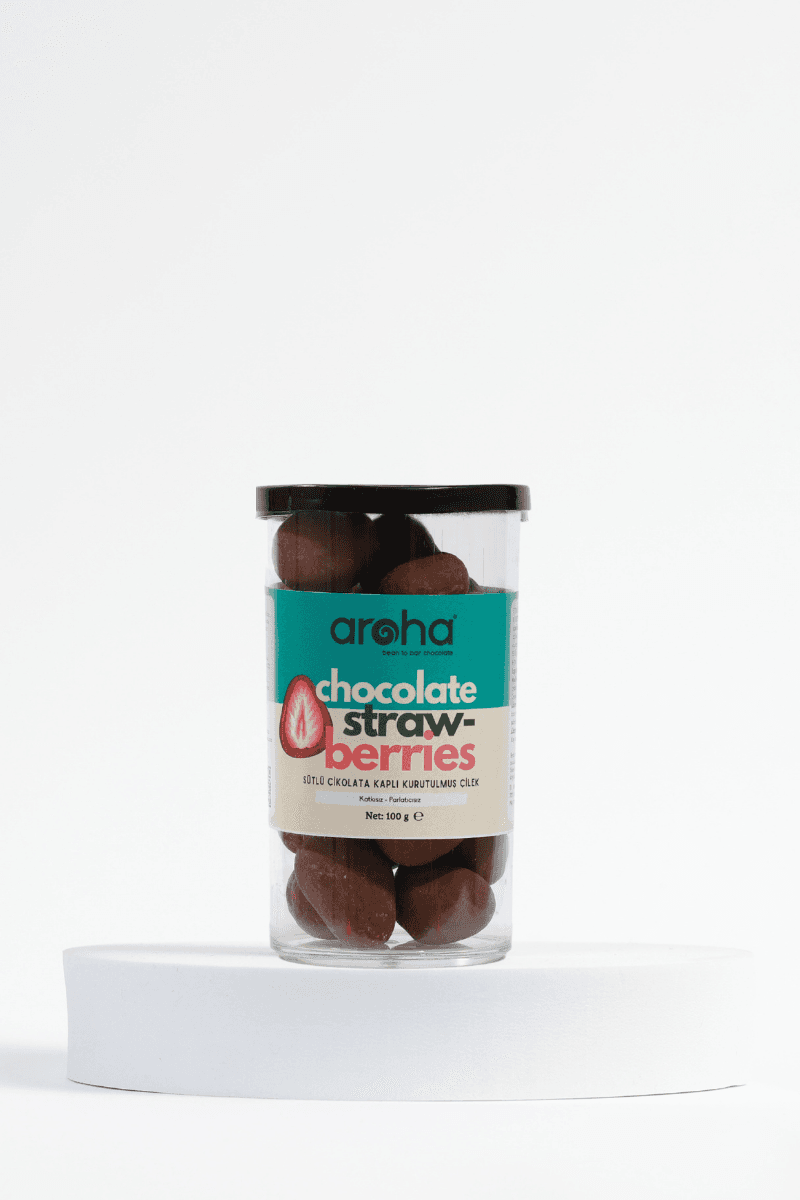 Dondurularak kurutulmuş çilekleri katkısız ve koruyucusuz sütlü çikolatamız ile kapladık, renklendirici ve parlatıcı kullanmadık.