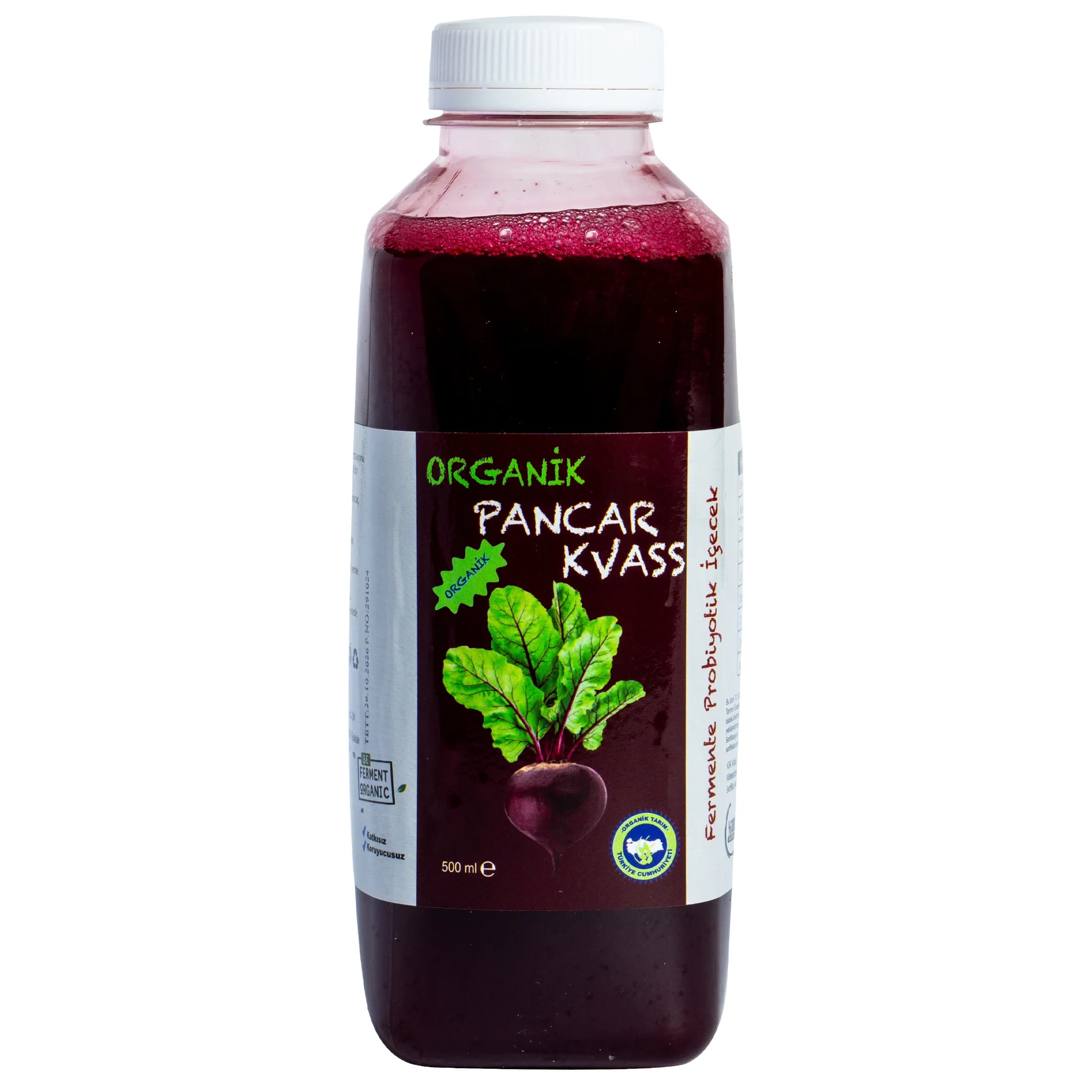 Beferment Organik Kırmızı Pancar Kvass Acılı, geleneksel fermantasyon yöntemiyle üretilmiş, acı biber ile zenginleştirilmiş fermente bir içecektir. Beypazarı’ndan getirilen organik sertifikalı kırmızı pancarlar, içme suyu ve deniz tuzu ile fermente edilerek özgün lezzeti ve doğallığı korunur. Fermantasyon sürecinin tamamlanmasının ardından kvass şişelenerek tüketime hazır hale getirilir.