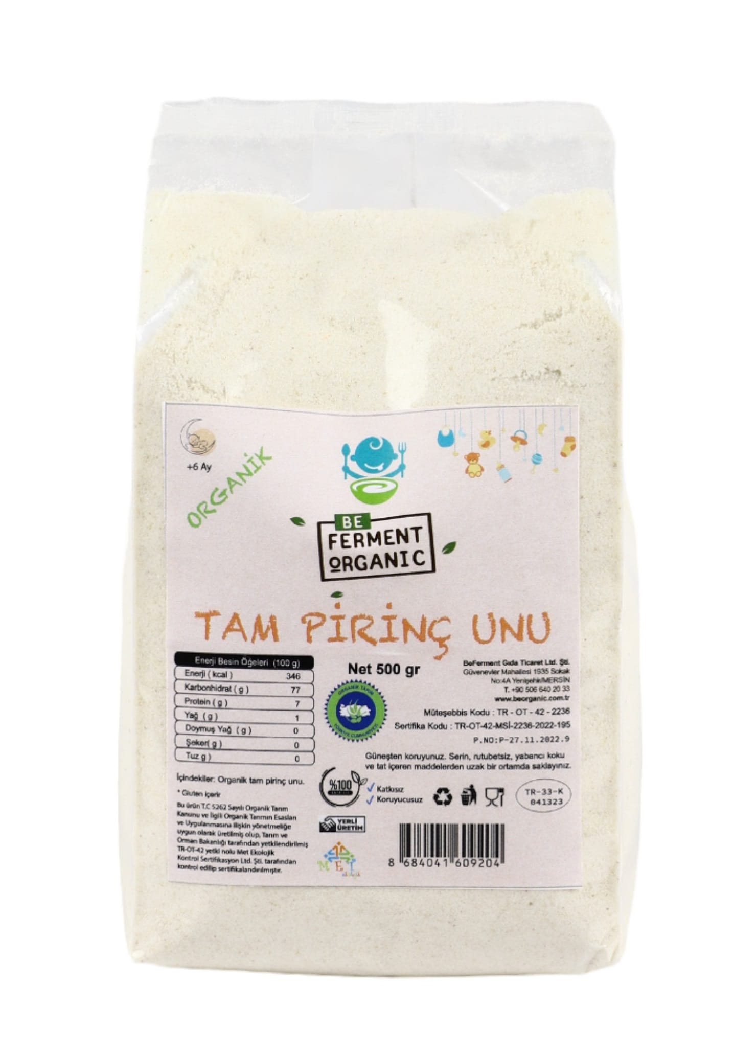 İçindekiler: Organik Tam Pirinç Unu.