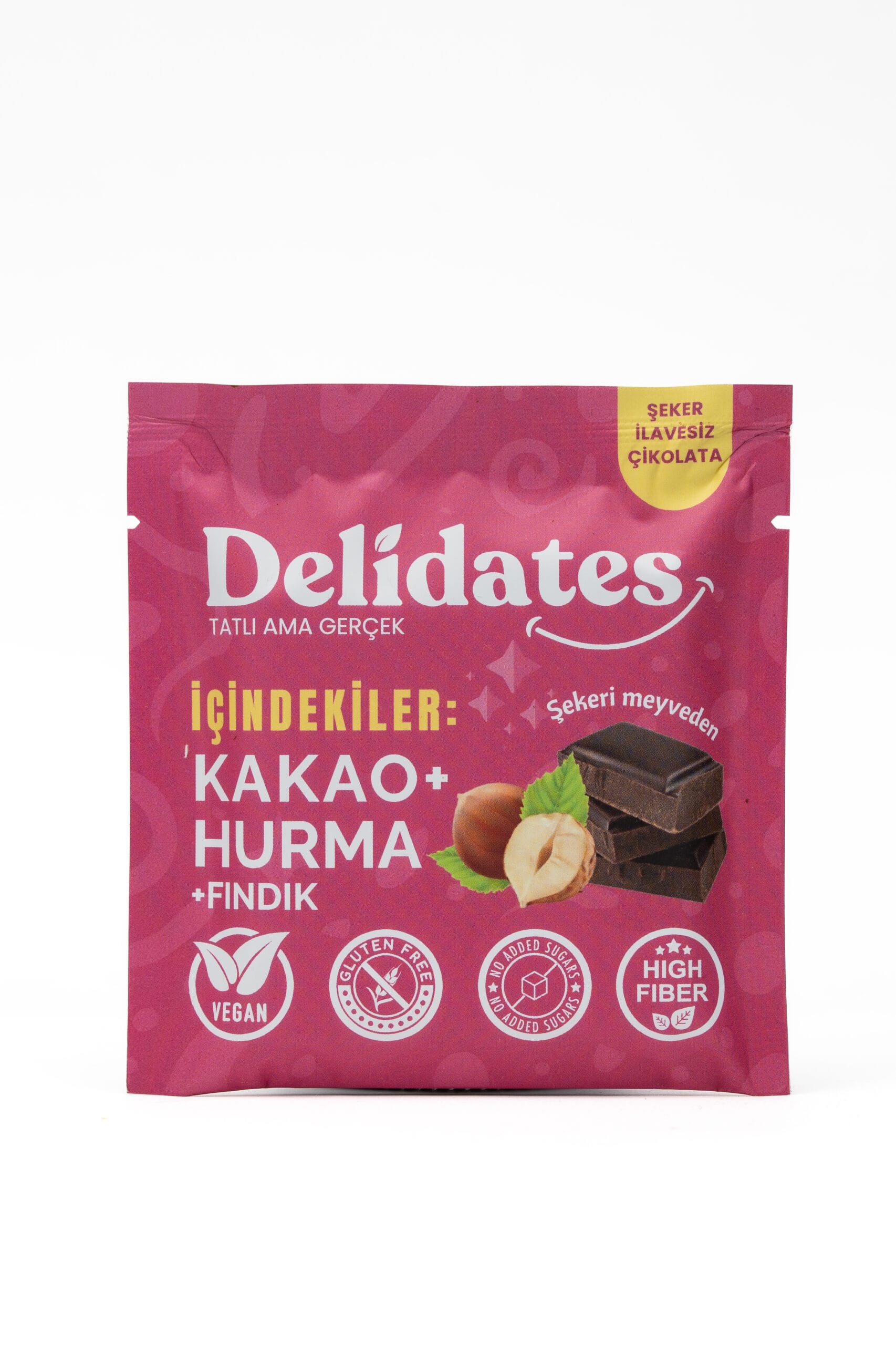 Delidates, şeker ilavesiz özel formülüyle tatlı ihtiyacınızı karşılar. Hurmanın doğal lezzeti kakao ile buluşur, fındık ile zenginleşir.