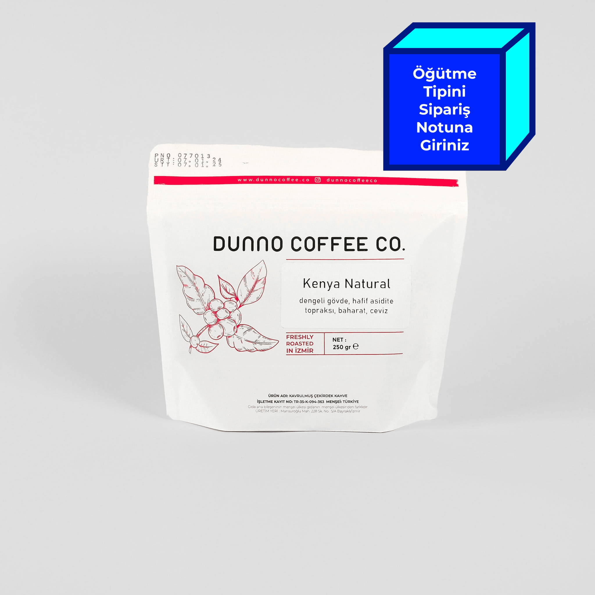 Sipariş notunda tercih ettiğiniz öğütme tipini (espresso, mokapot, kâğıt filtre, French press, metal/bez filtre) belirtebilirsiniz.