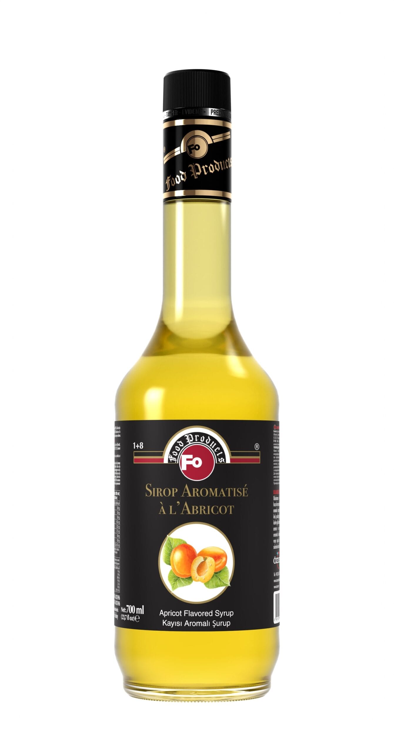 Olgun kayısının doğal lezzetini içeceklerinize taşıyan Fo Kayısı Aromalı Şurup, 700 ml cam şişe ambalajı ve 3 yıllık raf ömrüyle hem ev hem de profesyonel kullanıma uygundur.