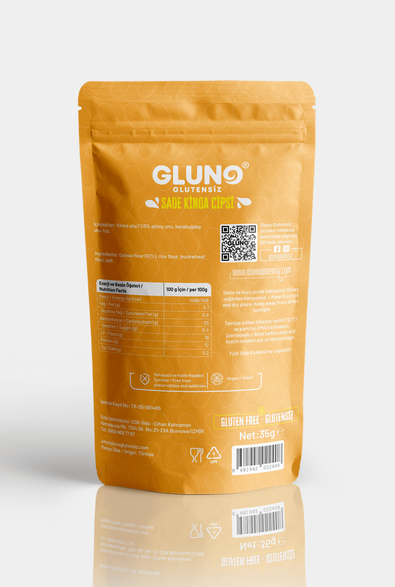 Gluno Glutensiz Kinoa Cipsi, glutensiz beslenenler için bir alternatiftir.