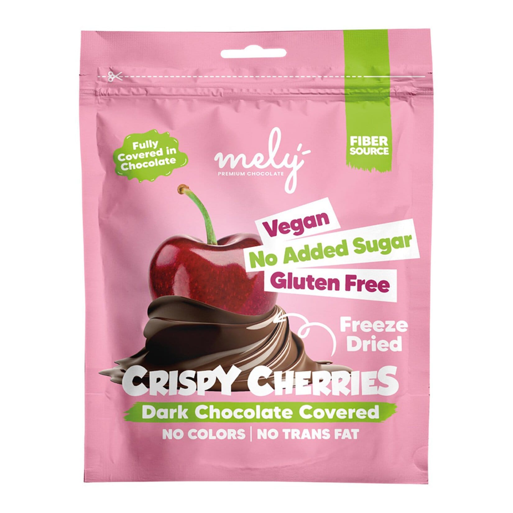 Mely’nin özel formülüyle üretilen çikolata kaplı kurutulmuş vişne, şeker ilavesiz, vegan ve glütensiz yapısıyla sağlıklı bir atıştırmalık alternatifi sunar. Yoğun çikolata tadı, vişnenin doğal ekşi lezzetiyle birleşerek eşsiz bir tat deneyimi yaratır.