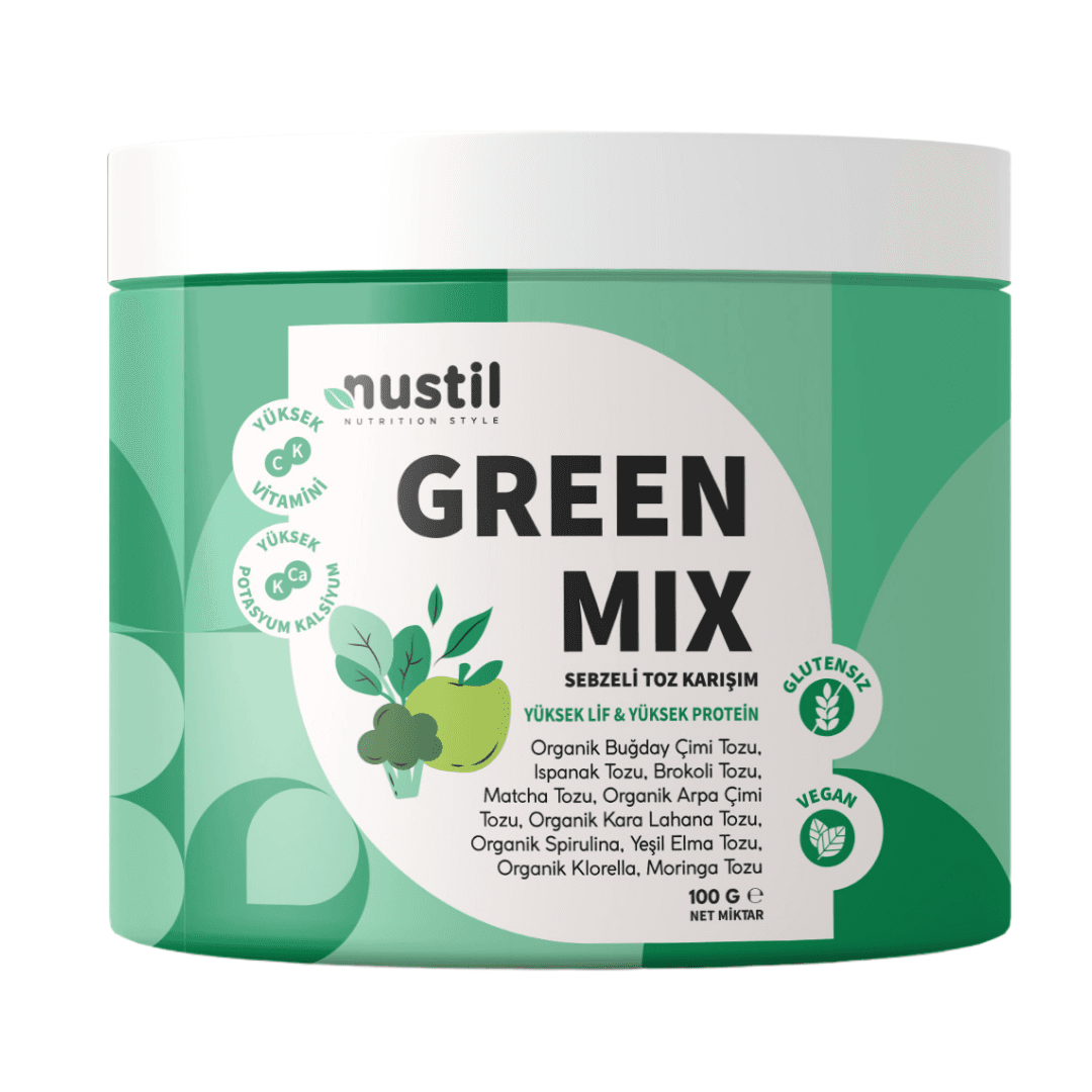 Nustil Green Mix Sebzeli Toz Karışım, farklı yeşil sebzeler ve bitkilerden oluşan besleyici bir karışımdır.