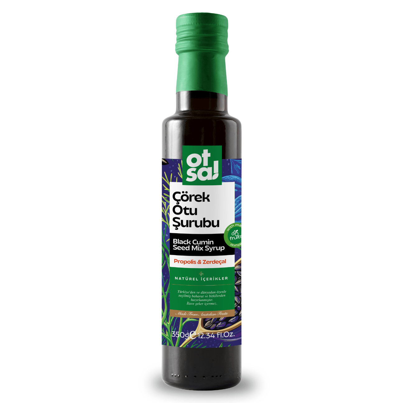 Otsa Çörek Otu Şurubu, Türkiye’den ve dünyanın farklı bölgelerinden özenle seçilen bitkilerle hazırlanmıştır. İlave şeker içermez ve tamamen doğal malzemeler kullanılmıştır. Şurubun içeriğinde; pancar pekmezi, çörek otu ekstresi (%14), sıvı propolis (%4), zerdeçal, çinko sülfat ve C vitamini (askorbik asit) bulunur.