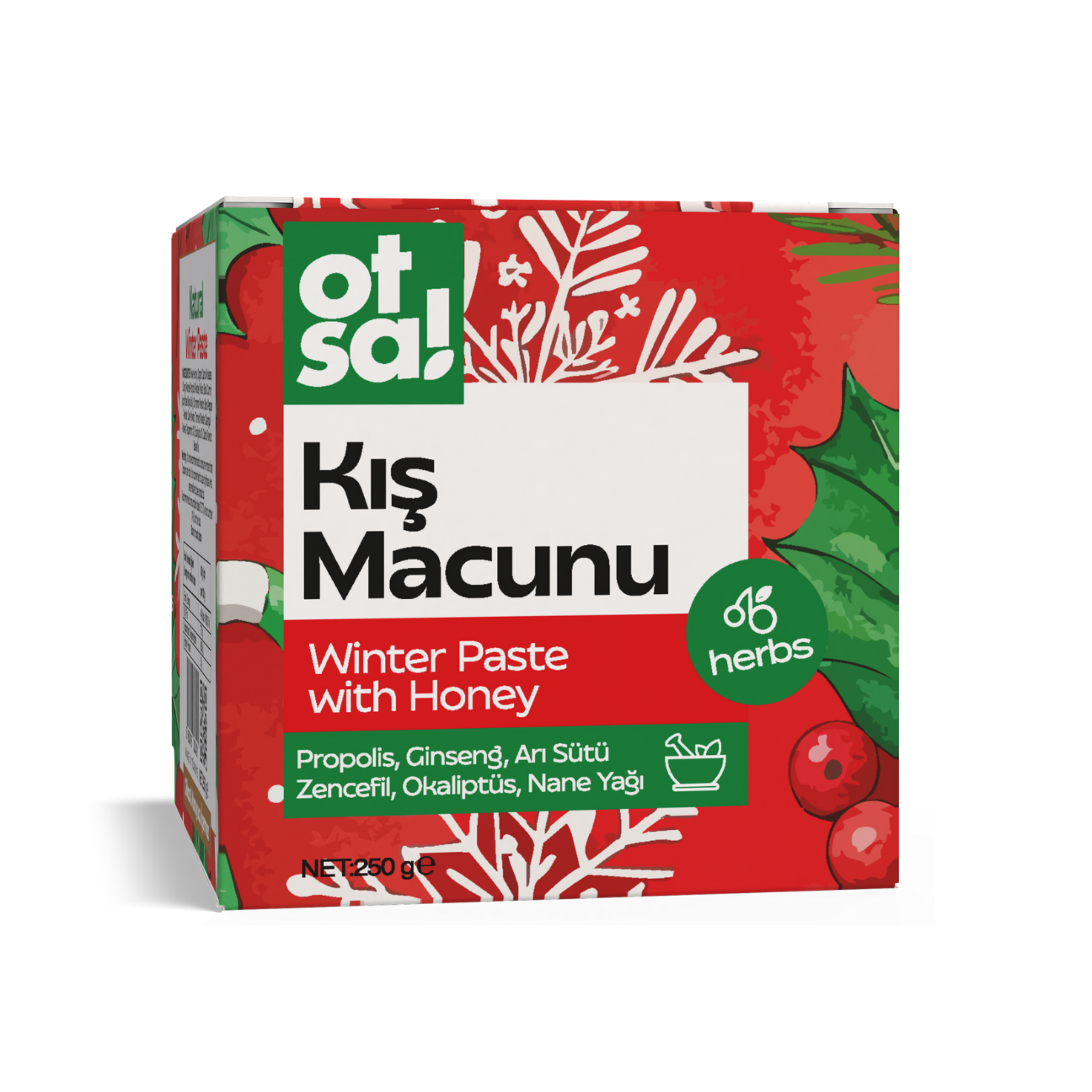 Otsa Kış Macunu; bal ve özenle seçilmiş bitkisel bileşenlerin bir araya getirilmesiyle hazırlanmıştır. Geleneksel kullanım anlayışından ilham alınarak geliştirilen bu macun, yoğun kıvamı ve kendine özgü aromasıyla günlük tüketime uygun pratik bir form sunar.