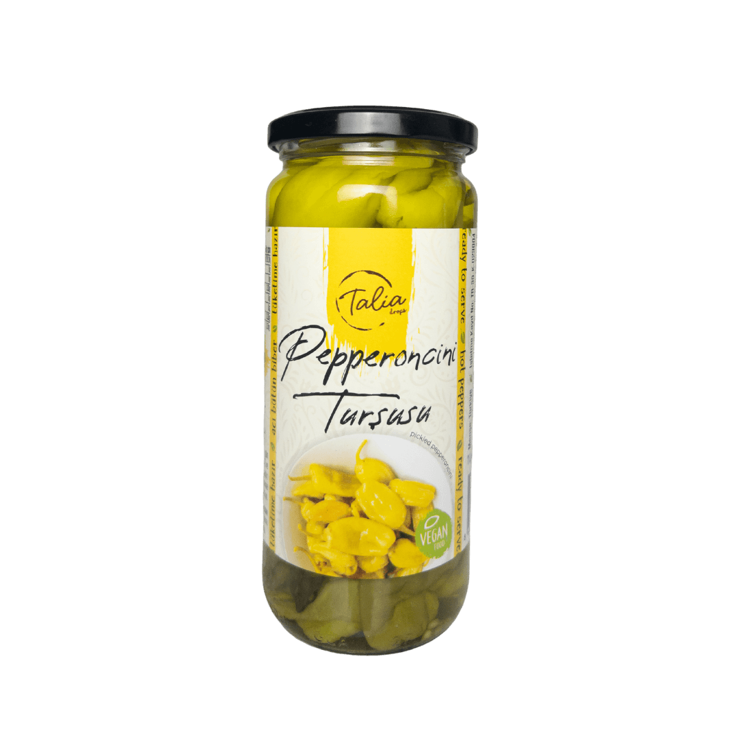 İnce kabuğu, hafif acımsı tadı ve kendine özgü aromasıyla Pepperoncini Turşusu, yemeklerinize farklı bir lezzet katar. Taze pepperoncini biberlerinden hazırlanan bu turşu, hafif ekşi ve ferahlatıcı bir tada sahiptir. Salatalardan sandviçlere, pizzalardan atıştırmalıklara kadar birçok tarifte kullanılabilir.