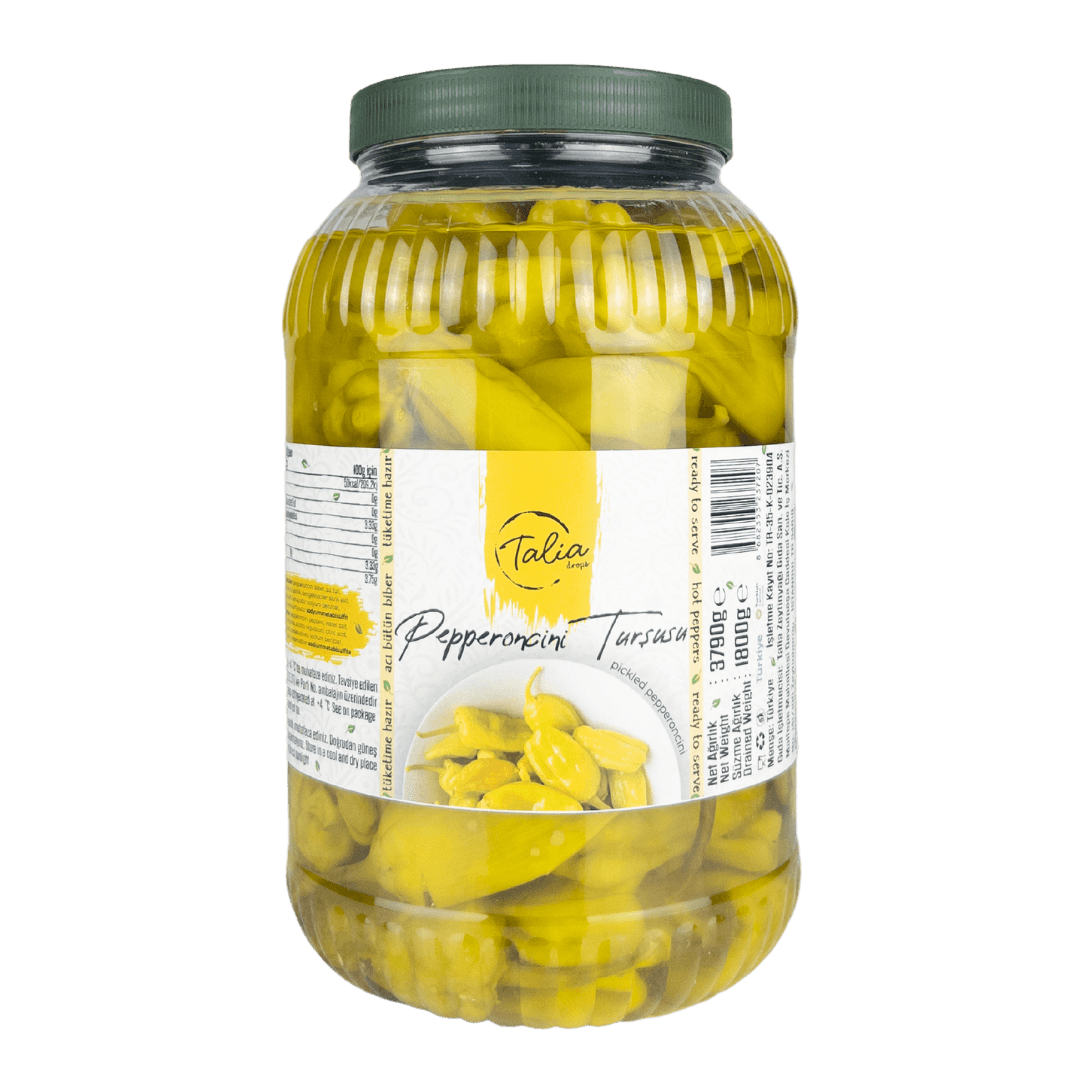 İnce kabuğu, hafif acımsı tadı ve kendine özgü aromasıyla Pepperoncini Turşusu, yemeklerinize farklı bir lezzet katar. Taze pepperoncini biberlerinden hazırlanan bu turşu, hafif ekşi ve ferahlatıcı bir tat sunar. Salatalardan sandviçlere, pizzalardan atıştırmalıklara kadar birçok tarifte kullanılabilir.