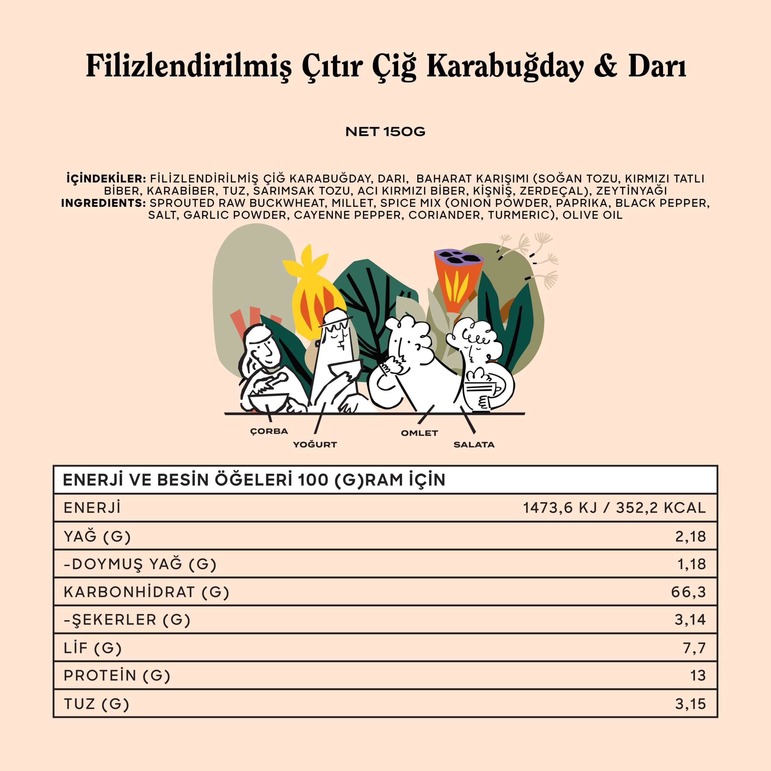 ✔ Geleneksel yöntemle filizlendirilmiş, kurutulmuş ve fırınlanmıştır.